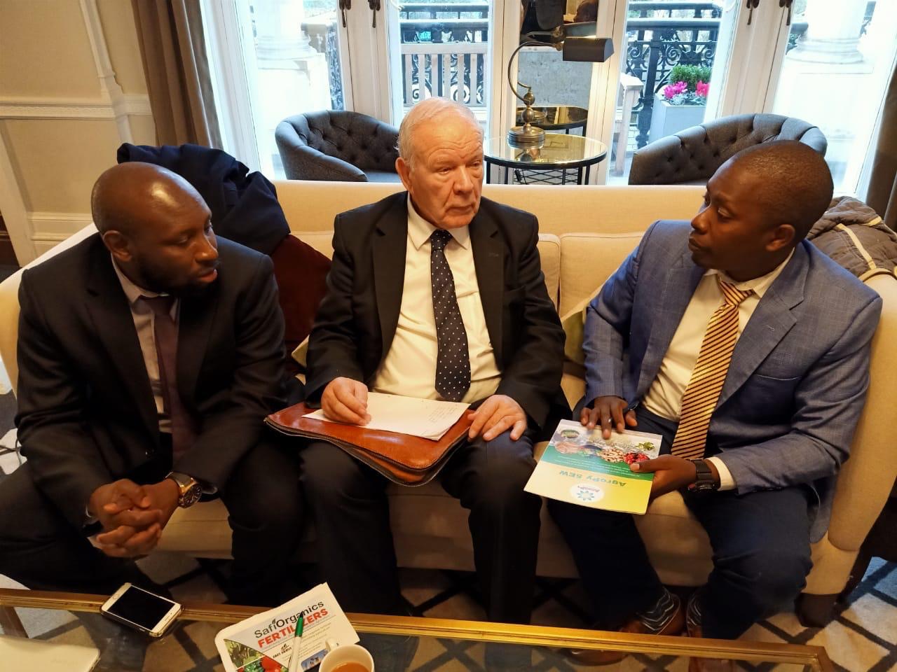The CEO of Pytex Botanical Ltd, Mr Samuel Rigu (r) meeting with the CEO of Agropy UK Ltd (m), Mr Bryan Shand and Dr Moses K Langat (l) a Research Leader at the Royal Botanic Gardens, Kew (UK)